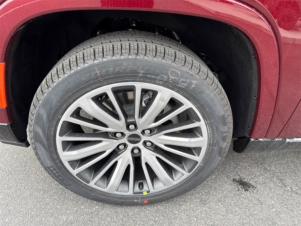 10 Speakers, 118 MPH Maximum Speed Calibration, 3 Panel Sunroof, 3.55 Rear Axle Ratio, 3rd row seats: bench, 4-Wheel Disc Brakes, 40/20/40 2nd Row Bench Power Tip/Slide, 60/40 Power Recline 3rd Row Seat, 8-Passenger Seating, 8-Passenger Seating Package, ABS brakes, Air Conditioning, Alloy wheels, AM/FM radio: SiriusXM with 360L, Anti-whiplash front head restraints, Apple CarPlay/Android Auto, Audio memory, Auto Adjust In Reverse Exterior Mirrors, Auto High Beam Headlamp Control, Auto Power Folding Exterior Mirrors, Auto Power-Folding Mirrors, Auto-dimming door mirrors, Auto-Dimming Exterior Driver Mirror, Auto-dimming Rear-View mirror, Auto-leveling suspension, Automatic temperature control, Brake assist, Bumpers: body-color, Compass, Delay-off headlights, Driver door bin, Driver vanity mirror, Driver's Seat Mounted Armrest, Drowsy Driver Detection, Dual front impact airbags, Dual front side impact airbags, Electronic Stability Control, Emergency communication system: Jeep Connect, Exterior Accents Limited, Exterior Mirrors Approach Lamps, Exterior Mirrors w/Memory, Exterior Mirrors w/Supplemental Signals, Four wheel independent suspension, Front anti-roll bar, Front Bucket Seats, Front Center Armrest w/Storage, Front dual zone A/C, Front fog lights, Front License Plate Bracket, Front reading lights, Full Length Floor Console, Fully automatic headlights, Garage door transmitter, Genuine wood console insert, Genuine wood dashboard insert, Genuine wood door panel insert, Heated door mirrors, Heated Exterior Mirrors, Heated front seats, Heated rear seats, Heated steering wheel, Illuminated entry, Intersection Collision Assist System, Knee airbag, Leather Trimmed Bucket Seats, Low tire pressure warning, Memory seat, Navigation System, Normal Duty Suspension, Occupant sensing airbag, Outside temperature display, Overhead airbag, Overhead console, P&P Park & Unpark Assist w/Stop System, Panic alarm, ParkView Rear Back-Up Camera, Passenger door bin, Passenger seat mounted armrest, Passenger vanity mirror, Power adjustable front head restraints, Power Deployable Running Boards, Power door mirrors, Power driver seat, Power Liftgate, Power passenger seat, Power steering, Power windows, Quadra-Lift Air Suspension, Quick Order Package 25L Limited, Radio data system, Radio: Uconnect 5 Nav w/10.1" Display, Rain sensing wipers, Rear air conditioning, Rear anti-roll bar, Rear dual zone A/C, Rear reading lights, Rear seat center armrest, Rear window defroster, Rear window wiper, Reclining 3rd row seat, Remote keyless entry, Security system, Semi Active Damping, Side Distance Warning, Speed control, Speed-sensing steering, Speed-Sensitive Wipers, Split folding rear seat, Steering wheel memory, Steering wheel mounted audio controls, Surround View Camera System, Tachometer, Telescoping steering wheel, Tilt steering wheel, Traction control, Traffic Sign Recognition, Trip computer, Turn signal indicator mirrors, Variably intermittent wipers, Ventilated front seats, Voltmeter, Wheels: 20" x 9.0" Premium 2 Aluminum, Wheels: 22" x 9.0" Premium 4 Aluminum.