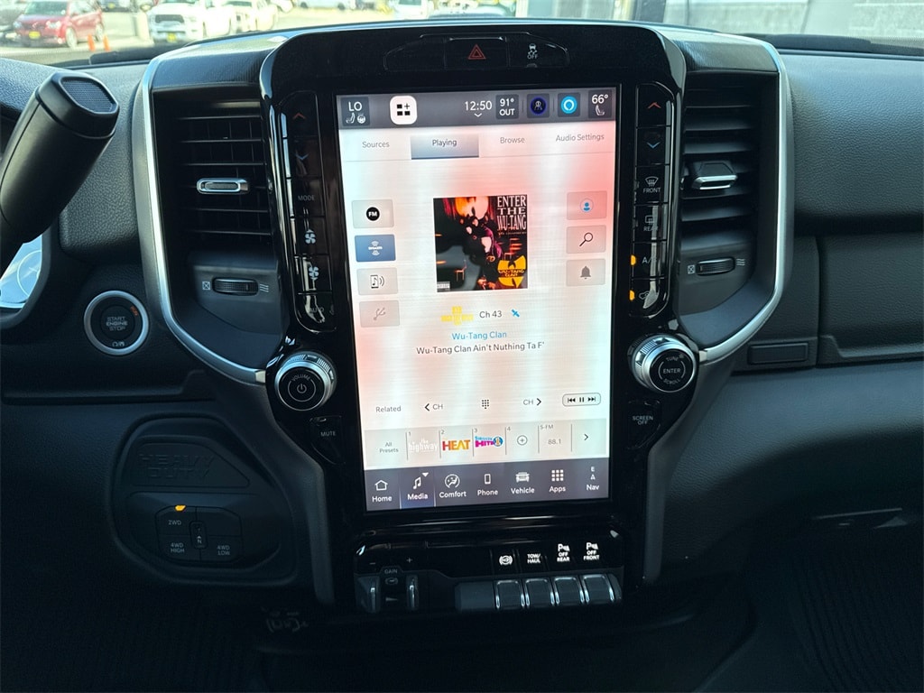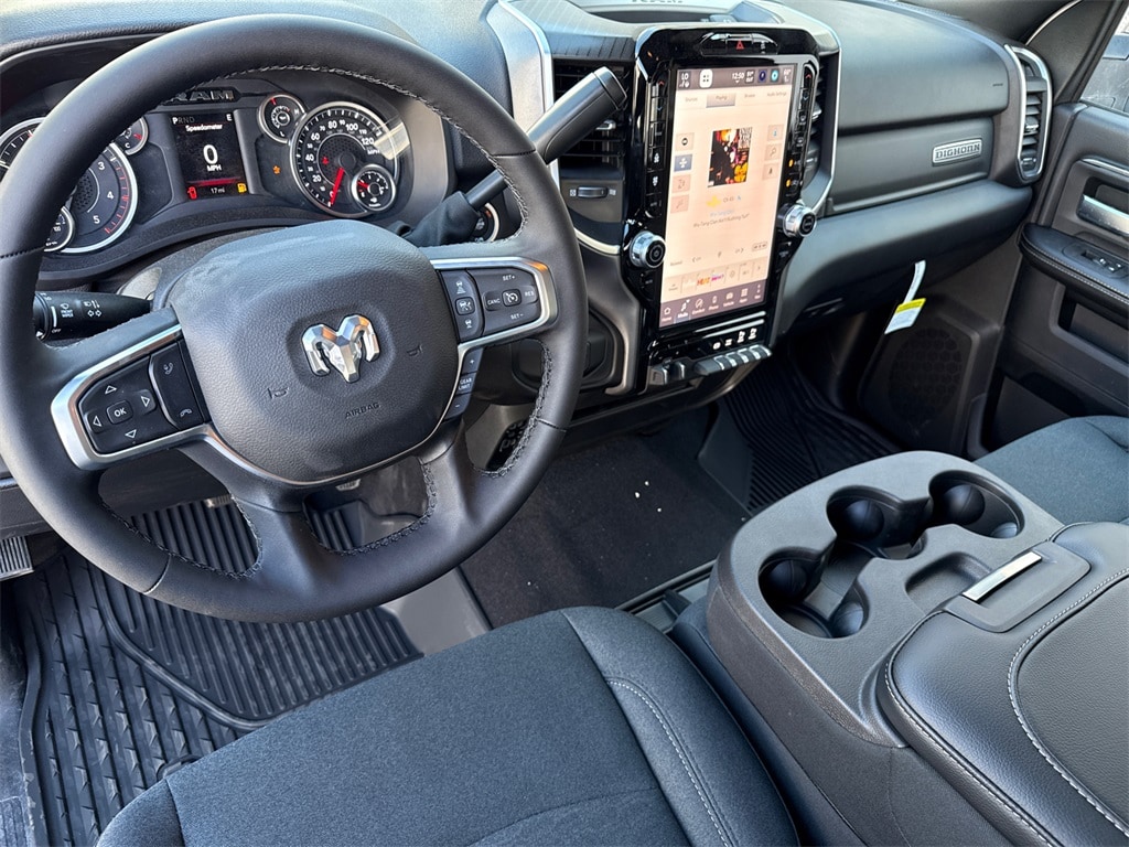 12" Touchscreen Display, 2 Way Rear Headrest Seat, 2nd Row in Floor Storage Bins, 4 Way Front Headrests, 4-Wheel Disc Brakes, 40/20/40 Split Bench Seat, 4G LTE Wi-Fi Hot Spot, 5th Wheel/Gooseneck Towing Prep Group, 6 Speakers, 9 Alpine Speakers with Subwoofer, ABS brakes, Air Conditioning, Air Conditioning ATC with Dual Zone Control, Alexa Built-in, Alloy wheels, AM/FM radio: SiriusXM, Anti-Spin Differential Rear Axle, Apple CarPlay, Apple CarPlay/Android Auto, Auto Power-Folding Mirrors, Auto-Dimming Rear-View Mirror, Big Horn Level 1 Plus Equipment Group, Black Exterior Mirrors, Black Interior Accents, Blind Spot and Cross Path Detection, Body Color Grille-Surround, Brake assist, Bumpers: chrome, Center Hub, Center Stop Lamp with Cargo View Camera, Cloth 40/20/40 Bench Seat, Cold Weather Group, Compass, Connected Travel and Traffic Services, Connectivity - US/Canada, Delay-off headlights, Disassociated Touchscreen Display, Driver door bin, Dual front impact airbags, Dual front side impact airbags, Dual Glove Boxes, Electronic Stability Control, Emergency Vehicle Alert System (EVAS), Engine Block Heater, Exterior Mirrors Courtesy Lamps, Exterior Mirrors with Heating Element, Exterior Mirrors with Supplemental Signals, Foam Bottle Insert (door Trim Panel), Folding Flat Load Floor Storage, Footwell Courtesy Lamp, For Details, Visit DriveUconnect.com, For More Info, Call 800-643-2112, Forward and Reverse Utility Lights, Front anti-roll bar, Front Armrest with Cupholders, Front Center Armrest w/Storage, Front Center Seat Cushion Storage, Front fog lights, Front License Plate Bracket, Front reading lights, Front Seat Back Map Pockets, Fully automatic headlights, Global Telematics Box Module, Glove Box Lamp, Google Android Auto, GPS Antenna Input, GPS Navigation, HD Radio, Heated door mirrors, Heated Front Seats, Heated Seats and Wheel Group, Heated Steering Wheel, Illuminated entry, Integrated Voice Command with Bluetooth, LED Bed Lighting, LED Tail Lamps, Locking Lower Glove Box, Low tire pressure warning, Luxury Steering Wheel, Manual Adjust 4-Way Driver Seat, Manual Adjust 4-Way Front Passenger Seat, Manufacturer's Statement of Origin, Mirror Running Lights, MOPAR Deployable Bed Step, MOPAR Front and Rear Rubber Floor Mats, MOPAR Spray in Bedliner, MOPAR Winter Front Grille Cover, Occupant sensing airbag, Off-Road Info Pages, Outside temperature display, Overhead airbag, Overhead console, Painted Front Bumper, Painted Rear Bumper, Panic alarm, ParkView Rear Back-Up Camera, Passenger door bin, Passenger vanity mirror, Power 2-Way Driver Lumbar Adjust, Power Adjust 8-Way Driver Seat, Power Adjust Mirrors, Power door mirrors, Power Heated Folding Telescopic Mirrors, Power steering, Power Telescoping Mirrors, Power windows, Power-Adjustable Convex Aux Mirrors, Premium Cloth 40/20/40 Bench Seat, Quick Order Package 24Z Big Horn, Radio data system, Radio: Uconnect 5 Navigation with 12.0" Display, Radio: Uconnect 5 with 8.4" Display, Rear 60/40 Folding Seat, Rear anti-roll bar, Rear Dome with on/Off Switch Lamp, Rear Folding Seat, Rear seat center armrest, Rear step bumper, Rear window defroster, Red Tail Lamp Bezels, Remote keyless entry, Remote Start System, Remote USB Port - Charge Only, Security system, Selectable Tire Fill Alert, SiriusXM Radio Service, SiriusXM with 360L, Speed control, Sport Appearance Package, Sport Decal, Steering Wheel Mounted Audio Controls, Storage Tray, Surround View Camera System, Tachometer, Tilt steering wheel, Towing Technology Group, Traction control, Trailer Reverse Guidance, Trailer Tire Pressure Monitoring System, Trailer Tow Pages, Trip computer, Turn signal indicator mirrors, Variably intermittent wipers, Voltmeter, Wheels: 18" x 8.0" Polished Aluminum. Price includes: $1000 - 2026 National Bonus Cash . Exp. 01/05/2026