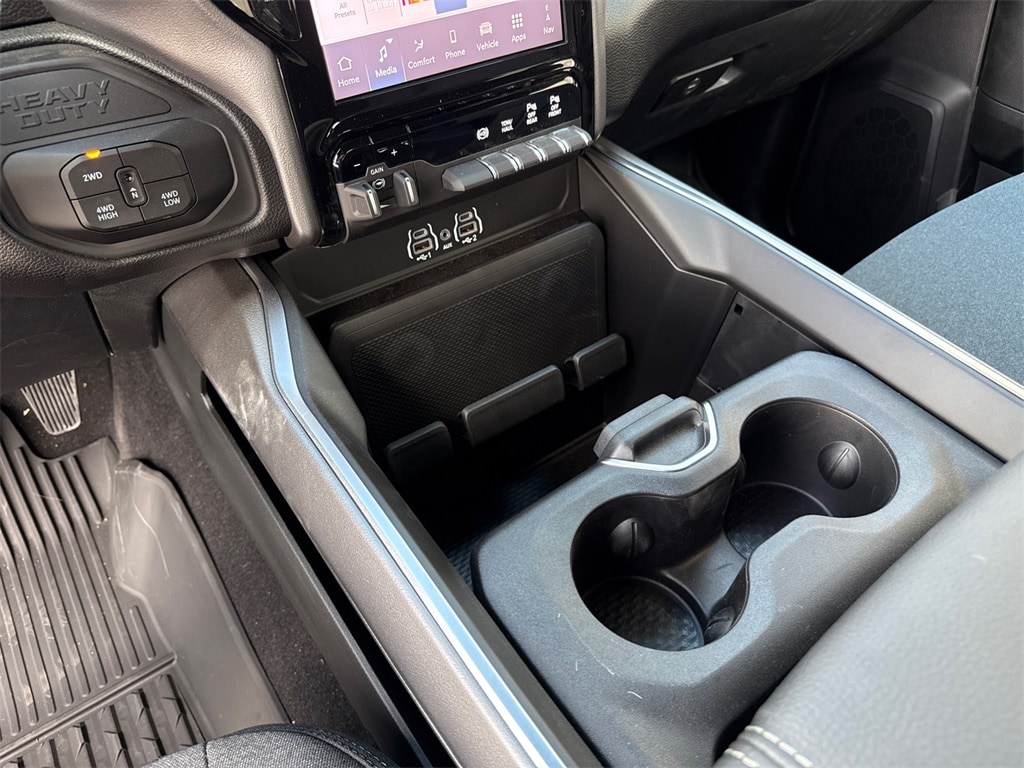 12" Touchscreen Display, 2 Way Rear Headrest Seat, 2nd Row in Floor Storage Bins, 4 Way Front Headrests, 4-Wheel Disc Brakes, 40/20/40 Split Bench Seat, 4G LTE Wi-Fi Hot Spot, 5th Wheel/Gooseneck Towing Prep Group, 6 Speakers, 9 Alpine Speakers with Subwoofer, ABS brakes, Air Conditioning, Air Conditioning ATC with Dual Zone Control, Alexa Built-in, Alloy wheels, AM/FM radio: SiriusXM, Anti-Spin Differential Rear Axle, Apple CarPlay, Apple CarPlay/Android Auto, Auto Power-Folding Mirrors, Auto-Dimming Rear-View Mirror, Big Horn Level 1 Plus Equipment Group, Black Exterior Mirrors, Black Exterior Truck Badging, Black Interior Accents, Black Wheel Center Hub, Body Color Grille-Surround, Brake assist, Bumpers: chrome, Center Hub, Cloth 40/20/40 Bench Seat, Cold Weather Group, Compass, Connected Travel and Traffic Services, Connectivity - US/Canada, Delay-off headlights, Disassociated Touchscreen Display, Driver door bin, Dual front impact airbags, Dual front side impact airbags, Dual Glove Boxes, Electronic Stability Control, Emergency Vehicle Alert System (EVAS), Engine Block Heater, Exterior Mirrors Courtesy Lamps, Exterior Mirrors with Heating Element, Exterior Mirrors with Supplemental Signals, Foam Bottle Insert (door Trim Panel), Folding Flat Load Floor Storage, Footwell Courtesy Lamp, For Details, Visit DriveUconnect.com, For More Info, Call 800-643-2112, Forward and Reverse Utility Lights, Front anti-roll bar, Front Armrest with Cupholders, Front Center Armrest w/Storage, Front Center Seat Cushion Storage, Front fog lights, Front License Plate Bracket, Front reading lights, Front Seat Back Map Pockets, Fully automatic headlights, Global Telematics Box Module, Gloss Black Nostrils/Mic Black Grille, Glove Box Lamp, Google Android Auto, GPS Antenna Input, GPS Navigation, HD Radio, Heated door mirrors, Heated Front Seats, Heated Seats and Wheel Group, Heated Steering Wheel, Illuminated entry, Integrated Voice Command with Bluetooth, LED Bed Lighting, Locking Lower Glove Box, Low tire pressure warning, Luxury Steering Wheel, Manual Adjust 4-Way Driver Seat, Manual Adjust 4-Way Front Passenger Seat, Manufacturer's Statement of Origin, Mirror Running Lights, MOPAR Deployable Bed Step, MOPAR Front and Rear Rubber Floor Mats, MOPAR Spray in Bedliner, MOPAR Winter Front Grille Cover, MyFlexCare Service Diesel, Night Edition, Occupant sensing airbag, Off-Road Info Pages, Outside temperature display, Overhead airbag, Overhead console, Painted Flat Wheel-to-Wheel Side Steps, Painted Front Bumper, Painted Rear Bumper, Panic alarm, ParkView Rear Back-Up Camera, Passenger door bin, Passenger vanity mirror, Power 2-Way Driver Lumbar Adjust, Power Adjust 8-Way Driver Seat, Power Adjust Mirrors, Power door mirrors, Power Heated Folding Telescopic Mirrors, Power steering, Power Telescoping Mirrors, Power windows, Power-Adjustable Convex Aux Mirrors, Premium Cloth 40/20/40 Bench Seat, Quick Order Package 24Z Big Horn, Radio data system, Radio: Uconnect 5 Navigation with 12.0" Display, Radio: Uconnect 5 with 8.4" Display, Rear 60/40 Folding Seat, Rear anti-roll bar, Rear Dome with on/Off Switch Lamp, Rear Folding Seat, Rear seat center armrest, Rear step bumper, Rear Wheelhouse Liners, Rear window defroster, Remote keyless entry, Remote Start System, Remote USB Port - Charge Only, Security system, Selectable Tire Fill Alert, SiriusXM Radio Service, SiriusXM with 360L, Speed control, Steering Wheel Mounted Audio Controls, Storage Tray, Tachometer, Tilt steering wheel, Traction control, Trailer Tow Pages, Trip computer, Turn signal indicator mirrors, Variably intermittent wipers, Voltmeter, Wheels: 18" x 8.0" Polished Aluminum, Wheels: 20" x 8.0" Black Painted Aluminum. Price includes: $1000 - 2026 National Bonus Cash . Exp. 02/02/2026