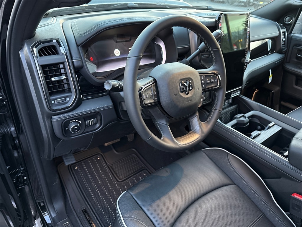 17 Speakers, 3.42 Axle Ratio, 4-Wheel Disc Brakes, 5th Wheel/Gooseneck Towing Prep Group, ABS brakes, Active Lane Management System, Adaptive Steering System, Adjustable pedals, Air Conditioning, Alloy wheels, AM/FM radio: SiriusXM with 360L, Anti-Spin Differential Rear Axle, Apple CarPlay/Android Auto, Audio memory, Auto High-beam Headlights, Auto-dimming door mirrors, Auto-dimming Rear-View mirror, Automatic temperature control, Black Exterior Truck Badging, Black Interior Accents, Black Limited Grille, Black Wheel Center Hub, Body Color Grille Surround, Bodyside moldings, Brake assist, Bumpers: body-color, Center Stop Lamp with Cargo View Camera, Cold Weather Group, Compass, Dash Pass Thru Wire Circuits, Delay-off headlights, Digital Rearview Mirror, Driver door bin, Driver vanity mirror, Drowsy Driver Detection, Dual front impact airbags, Dual front side impact airbags, Electronic Stability Control, Engine Block Heater, Front anti-roll bar, Front Bucket Seats, Front Center Armrest w/Storage, Front dual zone A/C, Front fog lights, Front License Plate Bracket, Front reading lights, Fully automatic headlights, Garage door transmitter, Genuine wood console insert, Genuine wood dashboard insert, Genuine wood door panel insert, harman/kardon® Speakers, Heated door mirrors, Heated front seats, Heated rear seats, Heated steering wheel, Illuminated entry, Instrument Panel Mounted Auxiliary Switches, Leather steering wheel, LED Bed Lighting, Limited Level 1 Equipment Group, Low tire pressure warning, Manufacturer's Statement of Origin, Memory seat, MOPAR Spray in Bedliner, MOPAR Winter Front Grille Cover, Navigation System, Night Edition, Occupant sensing airbag, Outside temperature display, Overhead airbag, Overhead console, Panic alarm, ParkView Rear Back-Up Camera, Passenger door bin, Passenger vanity mirror, Pedal memory, Pickup Box, Power Deployable Running Boards, Power door mirrors, Power driver seat, Power passenger seat, Power steering, Power Sunroof, Power windows, Quick Order Package 24M Limited, Radio data system, Radio: Uconnect 5 Nav with 14.4" Display, Rain sensing wipers, Rear anti-roll bar, Rear reading lights, Rear seat center armrest, Rear step bumper, Rear window defroster, Remote keyless entry, Security system, Speed control, Split folding rear seat, Sport Performance Hood, Steering wheel mounted audio controls, Surround View Camera System, Tachometer, Tilt steering wheel, Tow-Mode Camera (Wired), Tow-Mode Digital Rearview Mirror Package, Traction control, Traffic Sign Recognition, Trailer Reverse Guidance, Trailer Tire Pressure Monitoring System, Trip computer, Turn signal indicator mirrors, Ultra Premium Leather Seats, Variably intermittent wipers, Vendor Painted Cargo Box, Vendor Painted Cargo Box Tracking, Ventilated front seats, Voltmeter, Wheels: 20" x 8" Diamond Cut Aluminum, Wheels: 20" x 8" Night Edition Black Aluminum. Price includes: $1000 - 2026 National Bonus Cash . Exp. 02/02/2026